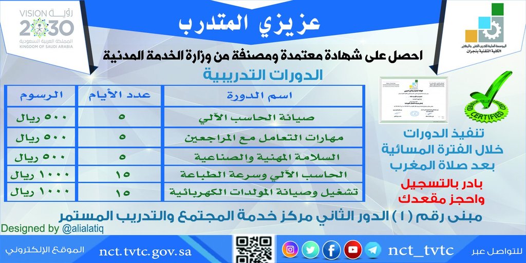 دورات نجران Twitterissa دورات تدريبية للمتدربين معتمدة ومصنفة من وزارة الخدمة المدنية بادر بالتسجيل وإحجز مقعدك التدريب التقني نجران نجران الان دورات نجران Https T Co 9ro9mnqmqv