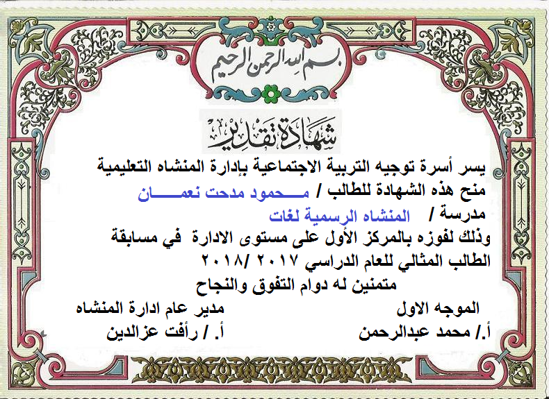 شهادات تفوق وتقدير لتعزيز السلوك الإيجابي شهادة تقدير جاهزة بالعربي نتعلم