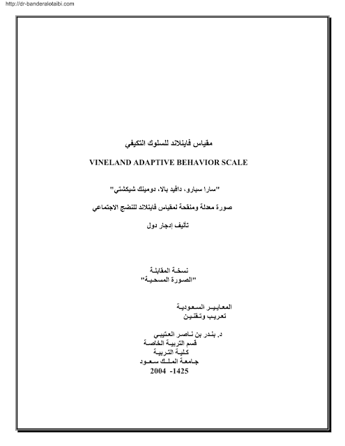 Author حبشى نجدى ونيس Title دراسة لتقنين مقياس فاينلاند للنضج الإجتماعى على عينة مصرية