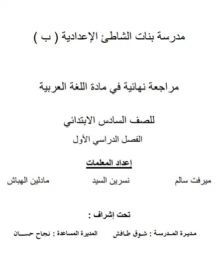 المراجعة النهائية في مبحث اللغة العربية للصف السادس الفصل الدراسي الأول موقع المتقدمون