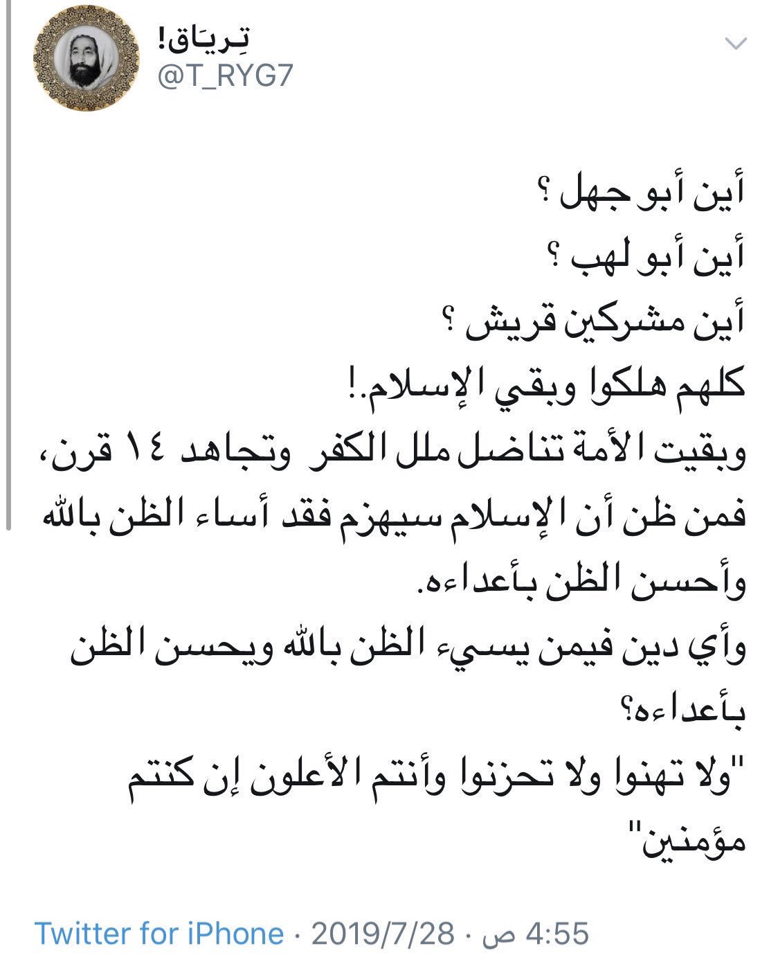 مناور سليمان على تويتر حساب رائع T Ryg7 يشعرك بعزة الإسلام وعزة أهله حيث يبعث في نفسك الغيرة على شعائر الدين فخطابات العزة لها شعلة عالية بين أبواق المخذلين المنتكسين عن الحق وهنا