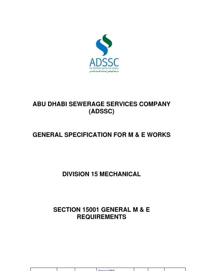00 Division 15 Section 15001 General M E Requirements Versio Specification Technical Standard Electrical Wiring