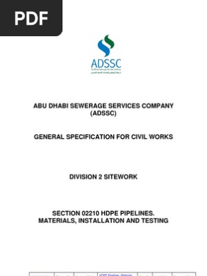 08 Section 2 Section 02210 Hdpe Pipeline Version 2 0 Polyethylene Pipe Fluid Conveyance