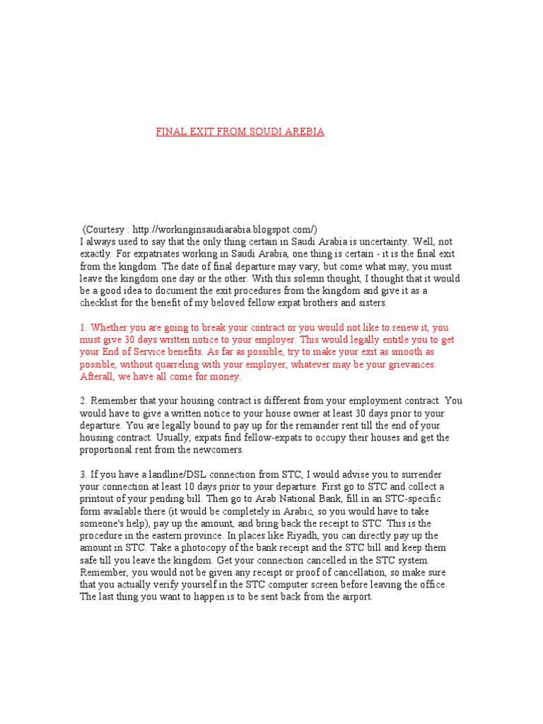 How To Make Exit Letter In Saudi Arabia